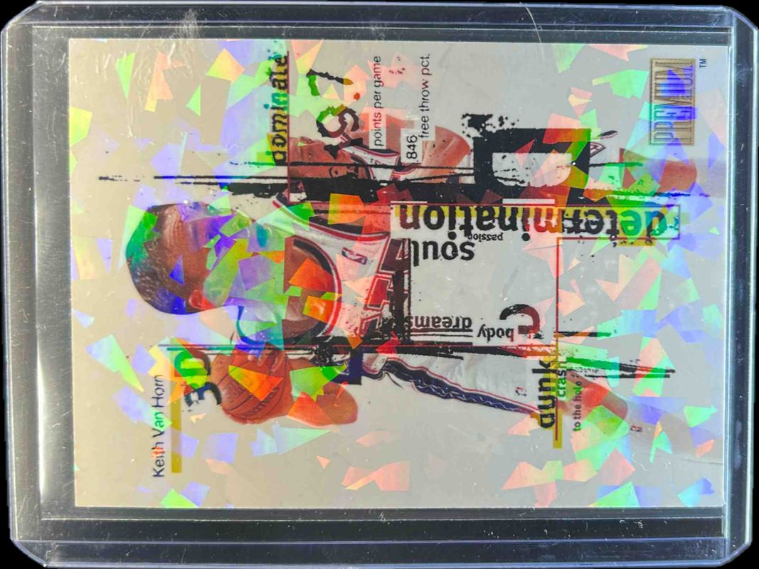 The Keith Van Horn 1998 Skybox Premium #13-DDD 3D card is 1 of 18 Keith Van Horn's card variations in the 1998 Skybox Premium set being tracked by Sports Card Investor, including #224 Base, #77 Base, #224 Ninety Fine - Star Rubies /50, #77 Star Rubies /50, and #224 Star Rubies /50.