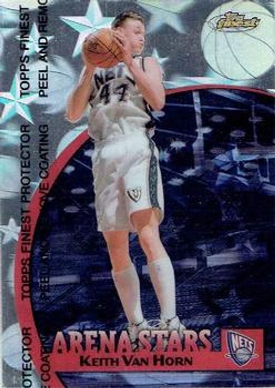 The Keith Van Horn 1998 Topps Finest #AS14 Arena Stars card is 1 of 13 Keith Van Horn's card variations in the 1998 Topps Finest set being tracked by Sports Card Investor, including Base, Base - No Coating, Refractor, Refractor - No Coating, and Mystery Finest.