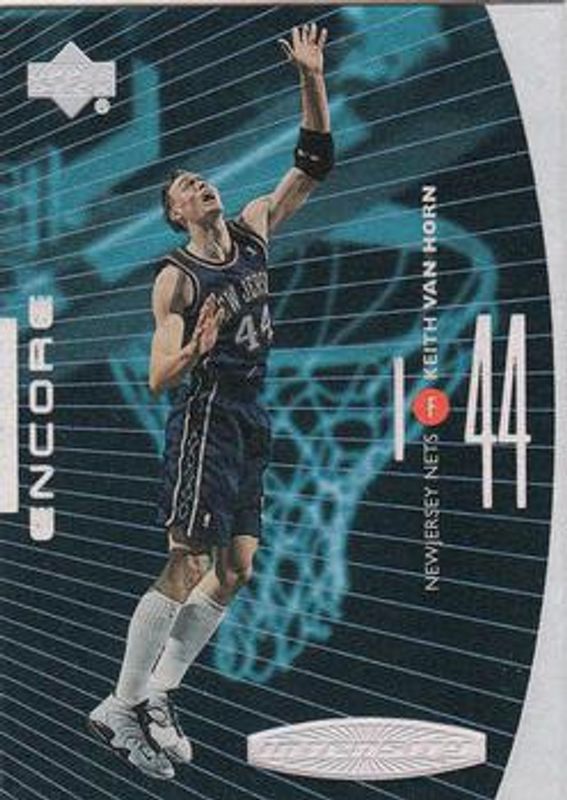 The Keith Van Horn 1998 Upper Deck Encore #I7 Intensity card is 1 of 5 Keith Van Horn's card variations in the 1998 Upper Deck Encore set being tracked by Sports Card Investor, including Base, F/X /125, Driving Forces, and Driving Forces - F/X /500.