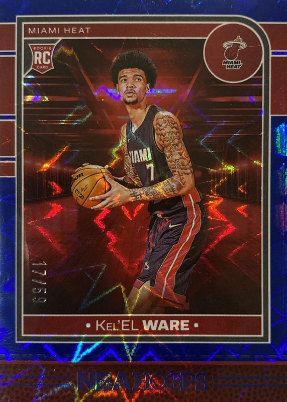 The Kel'el Ware 2024 Hoops #245 Blue Explosion /59 Rookie card in Raw condition has not changed in price in the last 30 days and was last sold for $10.00 .
