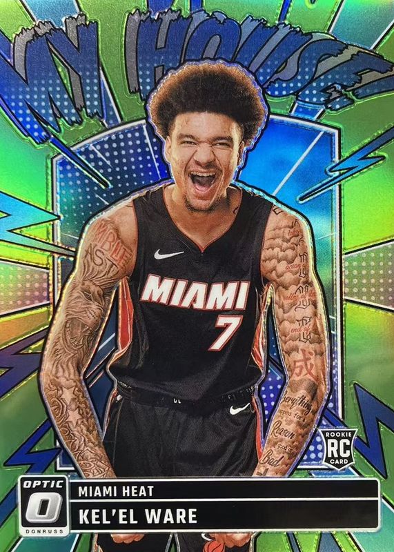 The Kel'el Ware 2024 Optic #11 My House - Lime Green /199 Rookie card in Raw condition has moved down -$3.77 (-45.9%) in the last 30 days and was last sold for $4.45 .