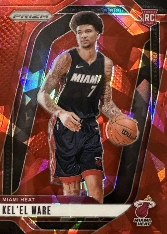 2024-25 Panini Prizm Red Cracked Ice #248 Kel’el Ware Miami Heat RC Rookie Card