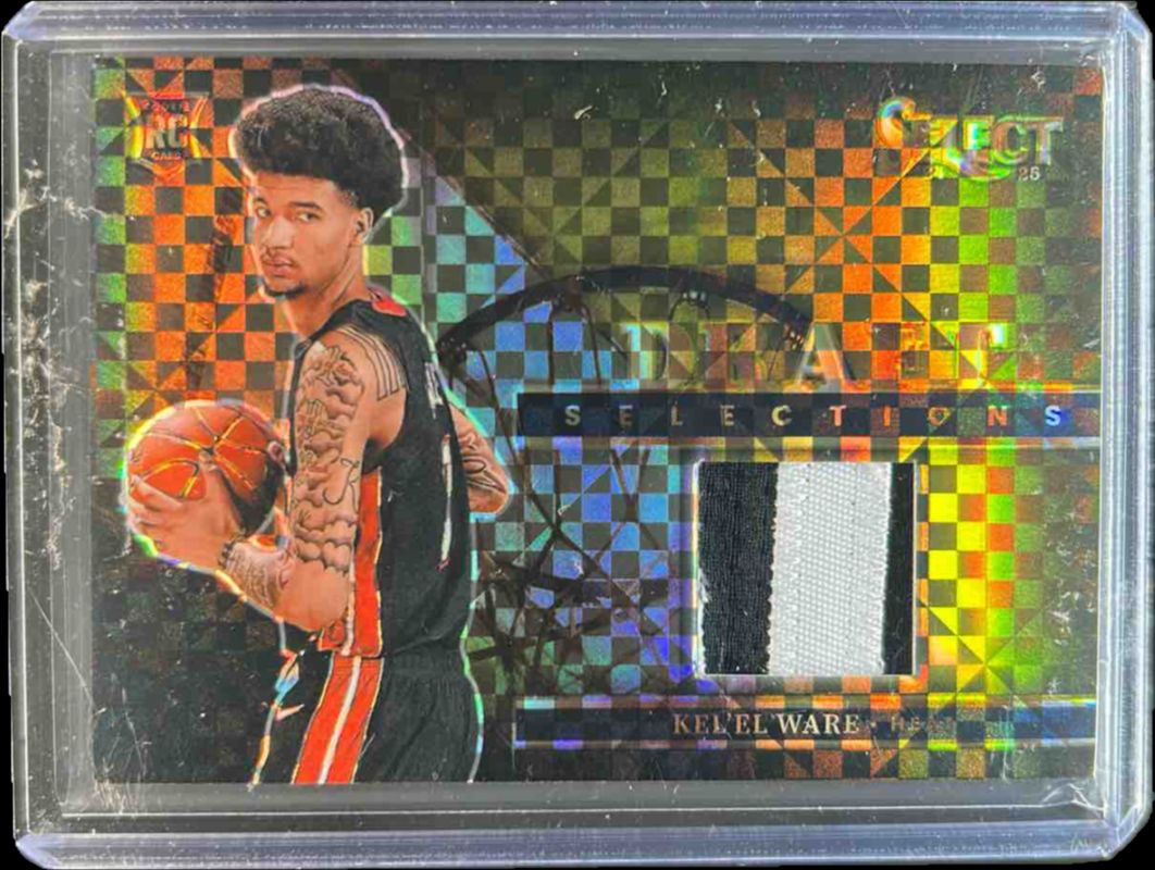 The Kel'el Ware 2024 Select #DSM-KEW Draft Selections Memorabilia Gold /10 Rookie card is 1 of 269 Kel'el Ware's card variations in the 2024 Select set being tracked by Sports Card Investor, including Concourse, Courtside, Mezzanine, Premier Level, and Concourse Blue Cracked Ice.