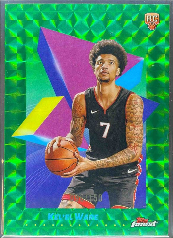 The Kel'el Ware 2024 Topps Finest #52 Base Common - Green Geometric Refractor /150 Rookie card is 1 of 116 Kel'el Ware's card variations in the 2024 Topps Finest set being tracked by Sports Card Investor, including Arrivals, Arrivals - Geometric Refractor, Arrivals - Refractor, Arrivals - X-Fractor, and Base Common.