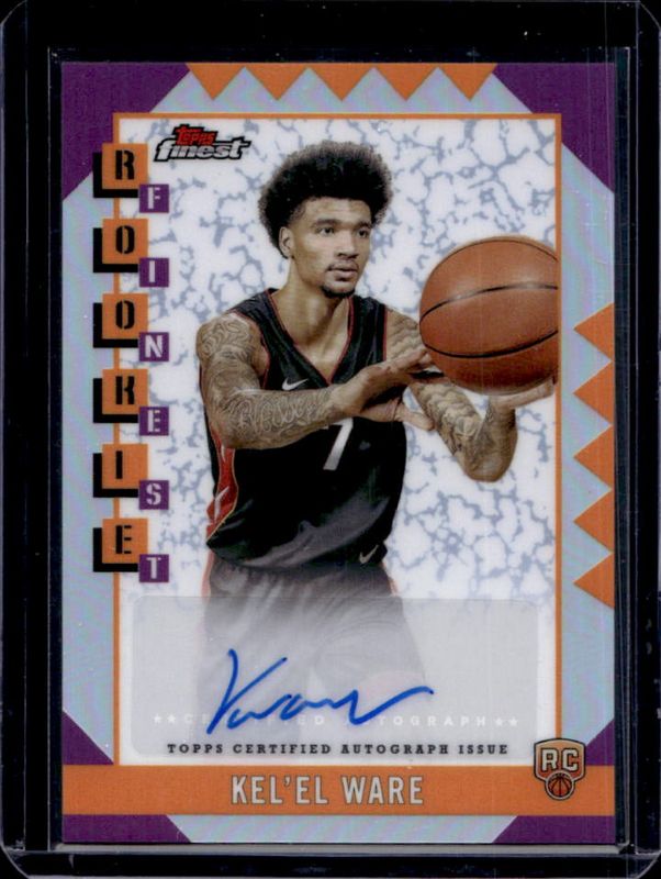 The Kel'el Ware 2024 Topps Finest #RFA-KW Rookie Finest Autographs card is 1 of 116 Kel'el Ware's card variations in the 2024 Topps Finest set being tracked by Sports Card Investor, including Arrivals, Arrivals - Geometric Refractor, Arrivals - Refractor, Arrivals - X-Fractor, and Base Common.