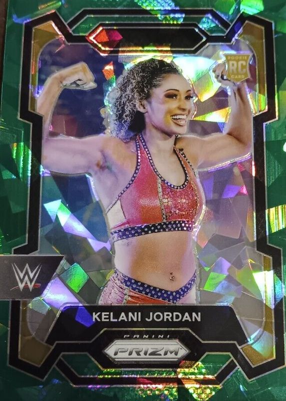 The Kelani Jordan 2024 Prizm WWE #127 Green Ice Rookie card in Raw condition has not changed in price in the last 30 days and was last sold for $3.25 .