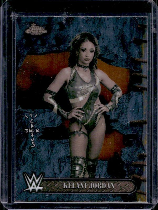 The Kelani Jordan 2025 Topps Chrome WWE x Cactus Jack #57 Base card is 1 of 39 Kelani Jordan's card variations in the 2025 Topps Chrome WWE x Cactus Jack set being tracked by Sports Card Investor, including Black & Yellow Refractor, Red & Black Refractor, Refractor, White Refractor, and Speckle Refractor /299.