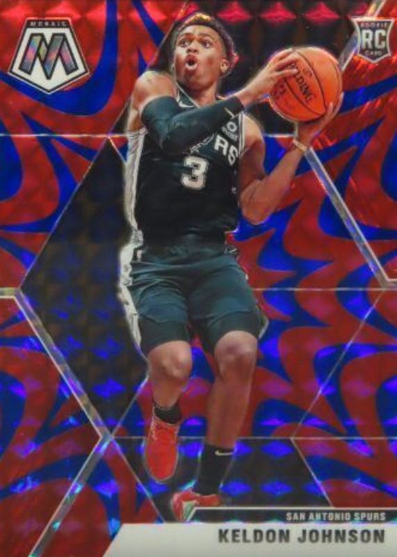 Keldon Johnson 2019-20 Panini Mosaic #238 Red Blue Reactive Prizm RC Spurs