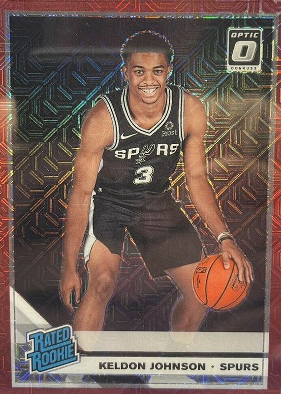 The Keldon Johnson 2019 Optic #186 Choice Red /88 Rookie card in Raw condition has not changed in price in the last 30 days and was last sold for $2.50 .