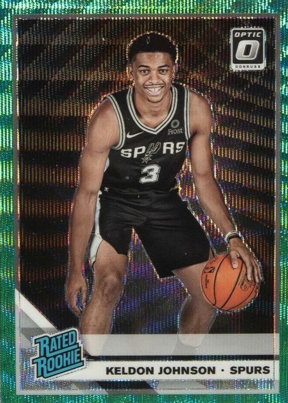 2019-20 Donruss Optic Keldon Johnson Green Wave Prizm Rated Rookie RC #186 Spurs