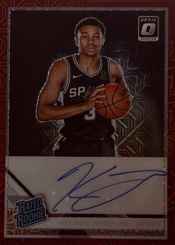 The Keldon Johnson 2019 Optic #186 Rated Rookie Signatures - Choice card in Raw condition has not changed in price in the last 30 days and was last sold for $7.00 .