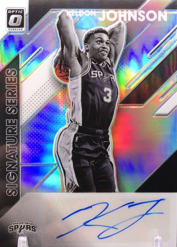 The Keldon Johnson 2019 Optic #SS-KJN Signature Series - Holo Rookie card in Raw condition has not changed in price in the last 30 days and was last sold for $14.25 .