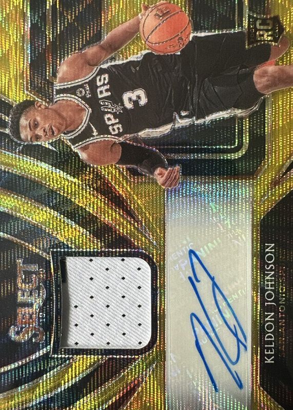 The Keldon Johnson 2019 Select #RJA-KJN Rookie Jersey Autographs - Gold Wave card in Raw condition has not changed in price in the last 30 days and was last sold for $15.50 .