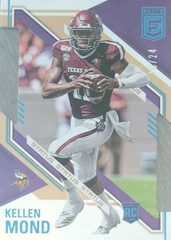The Kellen Mond 2021 Elite #108 Status Die-Cut /24 Rookie card in Raw condition has not changed in price in the last 30 days and was last sold for $0.99 .