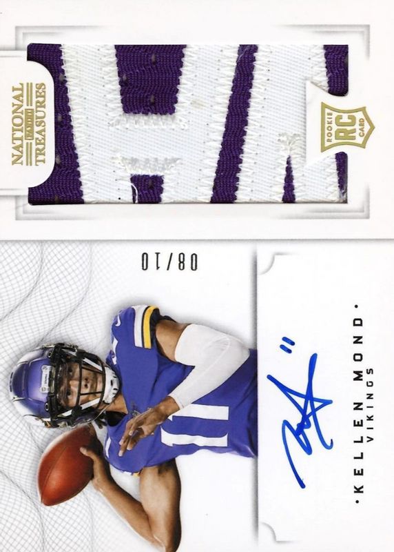 The Kellen Mond 2021 National Treasures #CRS-KM Crossover Rookie Patch Autographs - Holo Gold /10 card in Raw condition has not changed in price in the last 30 days and was last sold for $36.00 .