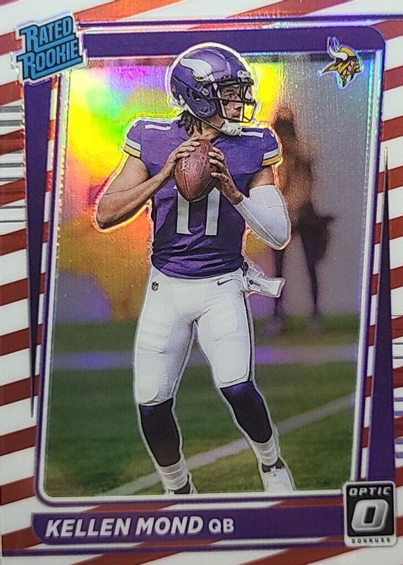 The Kellen Mond 2021 Optic #221 Freedom /(SSP) Rookie card in Raw condition has not changed in price in the last 30 days and was last sold for $3.25 .