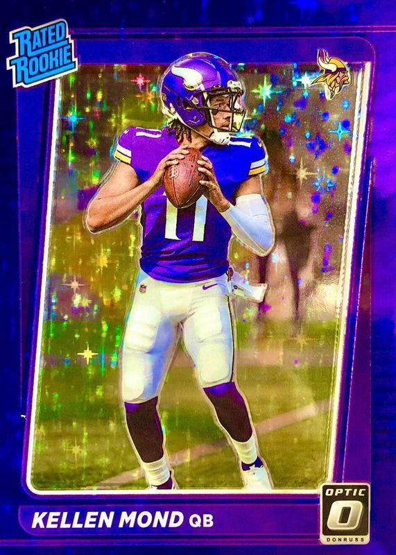 The Kellen Mond 2021 Optic #221 Purple Stars /15 Rookie card in Raw condition has not changed in price in the last 30 days and was last sold for $30.00 .