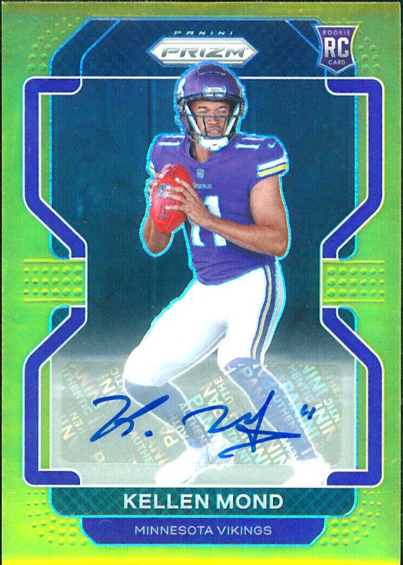 This card is 1 of 71 Kellen Mond's card variations in the 2021 Prizm set being tracked by Sports Card Investor, including Base, Disco, Green, Green Ice, and Lazer.
