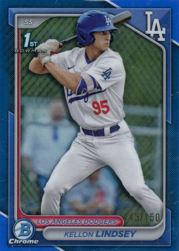 The Kellon Lindsey 2024 Bowman Draft #BDC-24 Chrome - Blue Refractor /150 (1st) card in Raw condition has not changed in price in the last 30 days and was last sold for $10.77 .