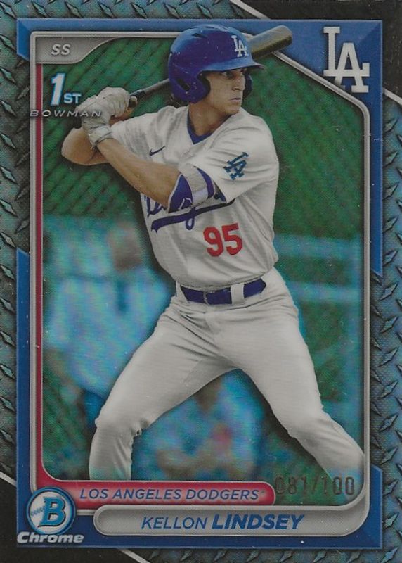 KELLON LINDSEY 2024 BOWMAN CHROME DRAFT 1ST STEEL METAL DODGERS /100 Q4490