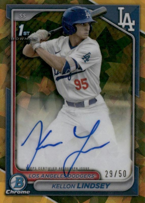 Recent Sales of Kellon Lindsey 2024 Bowman Draft Sapphire Edition #CPA-KL Chrome Prospect Auto - Gold /50 (1st) Raw
