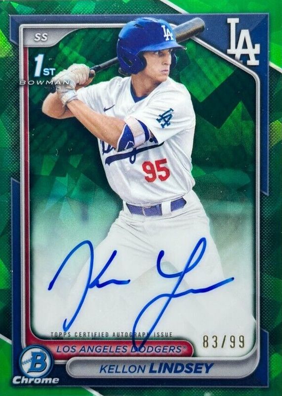 2024 Bowman Draft Sapphire Kellon Lindsey Chrome Auto Green 1st #83/99