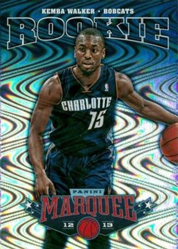 The Kemba Walker 2012 Marquee #162 Base Rookie card is 1 of 11 Kemba Walker's card variations in the 2012 Marquee set being tracked by Sports Card Investor, including #472 Base, #402 Base, #322 Base, #242 Base, and #242 Black Holoboard.