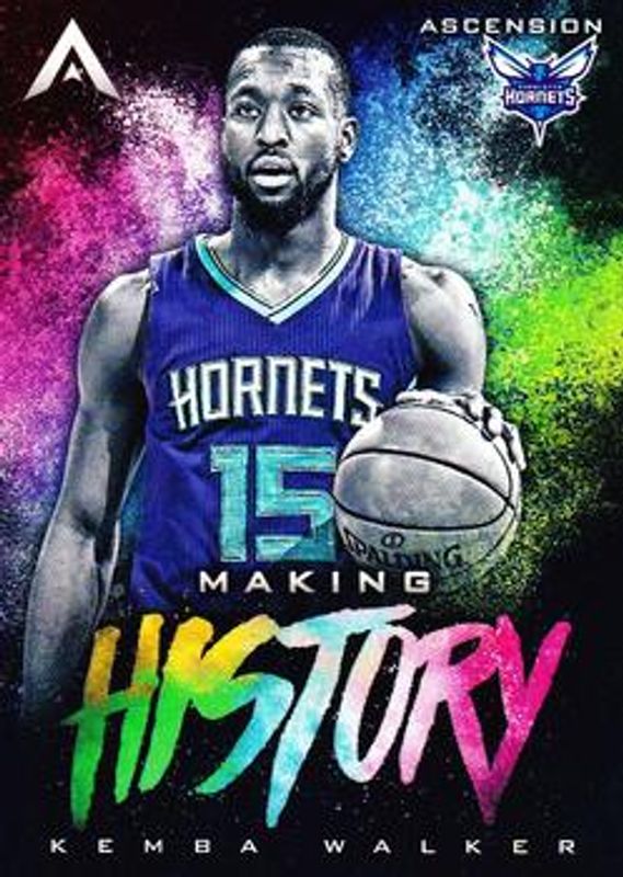 The Kemba Walker 2017 Ascension #MH21 Making History card is 1 of 11 Kemba Walker's card variations in the 2017 Ascension set being tracked by Sports Card Investor, including Base, Blue /125, Red /75, Green /25, and Black /1.