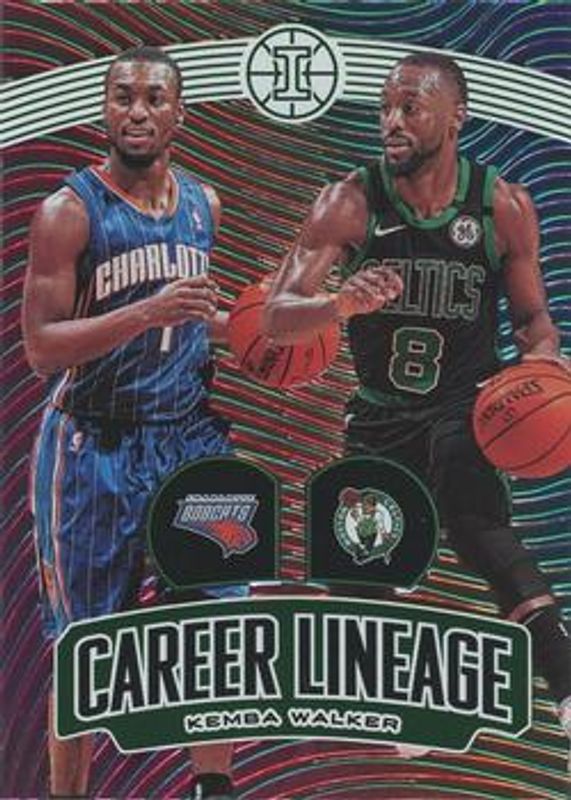 The Kemba Walker 2019 Illusions #7 Career Lineage card is 1 of 50 Kemba Walker's card variations in the 2019 Illusions set being tracked by Sports Card Investor, including Base, Trophy Collection Bronze, Trophy Collection Emerald, Trophy Collection Orange, and Trophy Collection Pink.