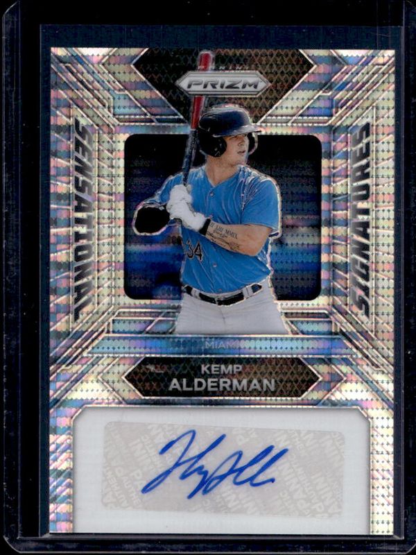 The Kemp Alderman 2024 Prizm #SS-KA Sensational Signatures - Pulsar /199 card is 1 of 50 Kemp Alderman's card variations in the 2024 Prizm set being tracked by Sports Card Investor, including Base, Blue Ice, Green, Green Ice, and Pink Ice.