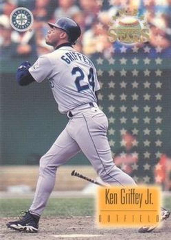 The Ken Griffey Jr. 1997 Topps Stars #4 Base card is 1 of 4 Ken Griffey Jr.'s card variations in the 1997 Topps Stars set being tracked by Sports Card Investor, including Always Mint, 1997 All Stars, and All Star Memories.