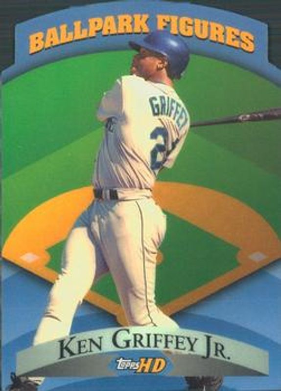 The Ken Griffey Jr. 2000 Topps High Definition (HD) #BF2 Ballpark Figures card is 1 of 5 Ken Griffey Jr.'s card variations in the 2000 Topps High Definition (HD) set being tracked by Sports Card Investor, including Base, Platinum, Image, and On the Cutting Edge.