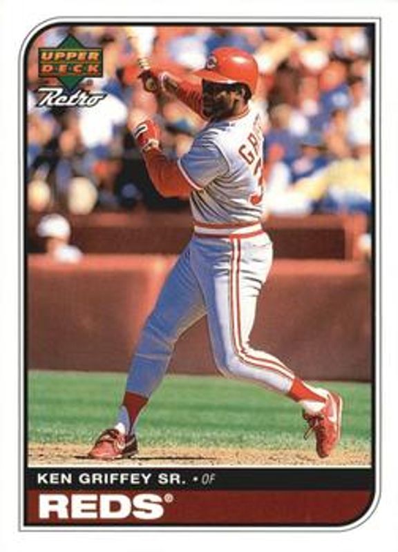 The Ken Griffey Sr. 1998 Upper Deck Retro #23 Base card is 1 of 9 Ken Griffey Sr.'s card variations in the 1998 Upper Deck Retro set being tracked by Sports Card Investor, including Base, Groovy Kind of Glove, Lunchboxes, Time Capsule, and Big Boppers /500.