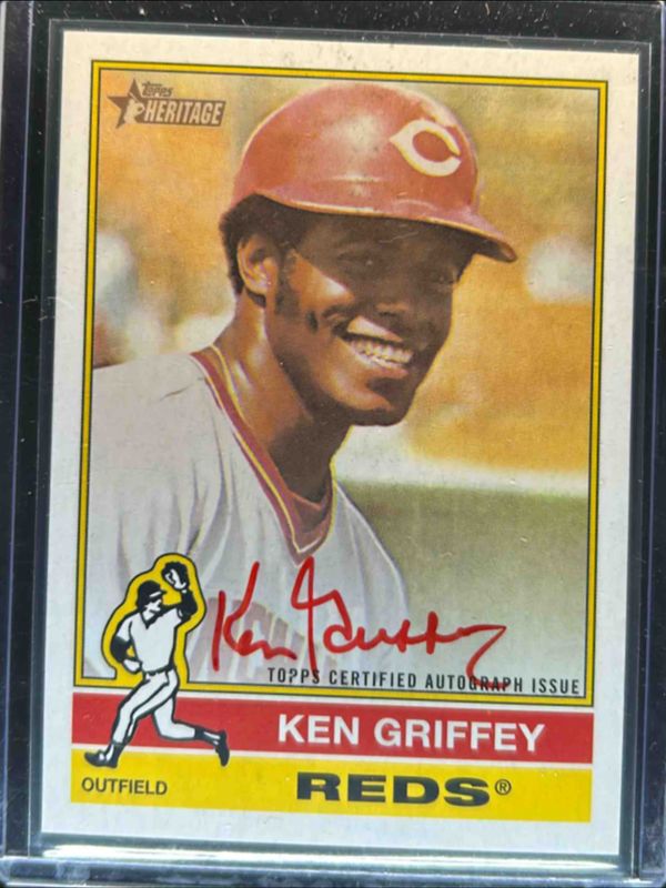 The Ken Griffey Sr. 2025 Topps Heritage #ROA-KG Real One Autographs - Red Ink /76 card is 1 of 5 Ken Griffey Sr.'s card variations in the 2025 Topps Heritage set being tracked by Sports Card Investor, including Real One Autographs, Through the Years, Through the Years - Holographic, and Bicentennial Relic /76.