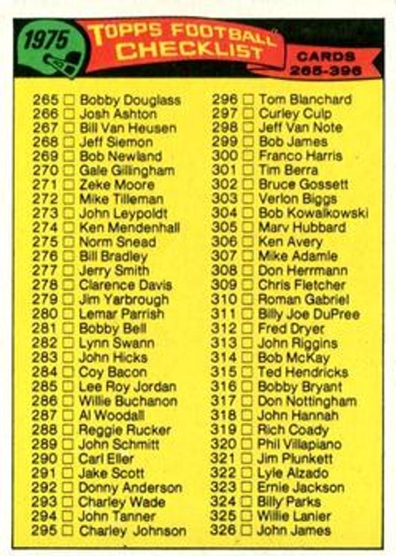 Other popular players in the 1975 Topps set include Dave Robinson, Dan Dierdorf / Winston Hill, Alan Page, Archie Manning, and Bobby Bell.