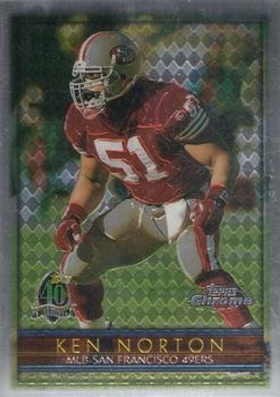 The Ken Norton Jr. 1996 Topps Chrome #119 Base card is 1 of 2 Ken Norton Jr.'s card variations in the 1996 Topps Chrome set being tracked by Sports Card Investor, including Refractor.