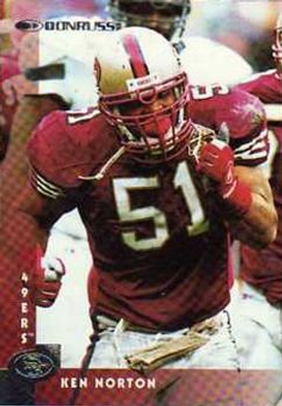 The Ken Norton Jr. 1997 Donruss #67 Base card is 1 of 3 Ken Norton Jr.'s card variations in the 1997 Donruss set being tracked by Sports Card Investor, including Press Proof Gold Die-Cut, and Press Proof Silver.