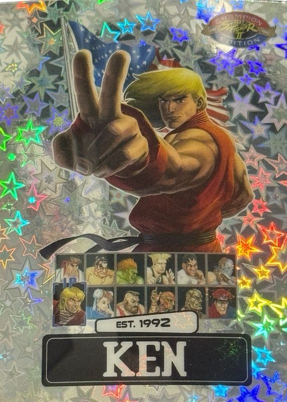 This card is 1 of 21 Ken's card variations in the 2025 Street Fighter 2: Champion Edition set being tracked by Sports Card Investor, including Silver, Blue Stars /199, Black Gold /100, Blue /100, and Blue Camo /100.