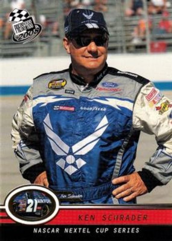 The Ken Schrader 2008 Press Pass #G35 Gold card is 1 of 10 Ken Schrader's card variations in the 2008 Press Pass set being tracked by Sports Card Investor, including Base, Blue, Platinum /100, eBay Previews /5, and Autographs.