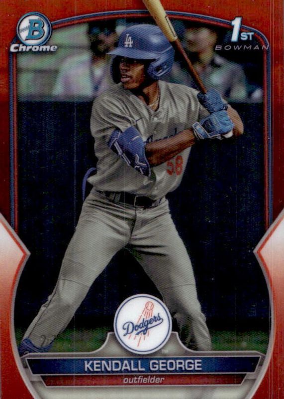 This card is 1 of 43 Kendall George's card variations in the 2023 Bowman Draft set being tracked by Sports Card Investor, including Chrome (1st), Chrome - Japan Refractor (1st), Chrome - Lunar Glow Refractor (1st), Chrome - Pearl Refractor (1st), and Chrome - Refractor (1st).
