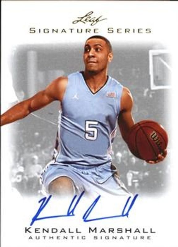 The Kendall Marshall 2012 Leaf Signature Series #BA-KM2 Base Rookie card is 1 of 43 Kendall Marshall's card variations in the 2012 Leaf Signature Series set being tracked by Sports Card Investor, including Silver /99, Gold /25, Blue /10, Red /5, and Printing Plates Black /1.