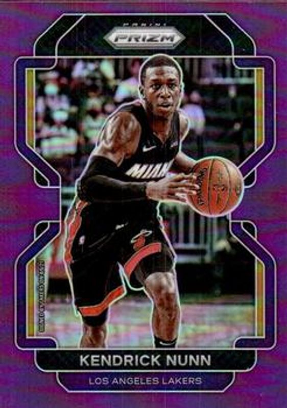 The Kendrick Nunn 2021 Prizm #216 Purple /99 card is 1 of 63 Kendrick Nunn's card variations in the 2021 Prizm set being tracked by Sports Card Investor, including Base, Blue NBA 75th Anniversary, Blue Wave, Choice Blue Yellow Green, and Factory Set Blue Hyper.