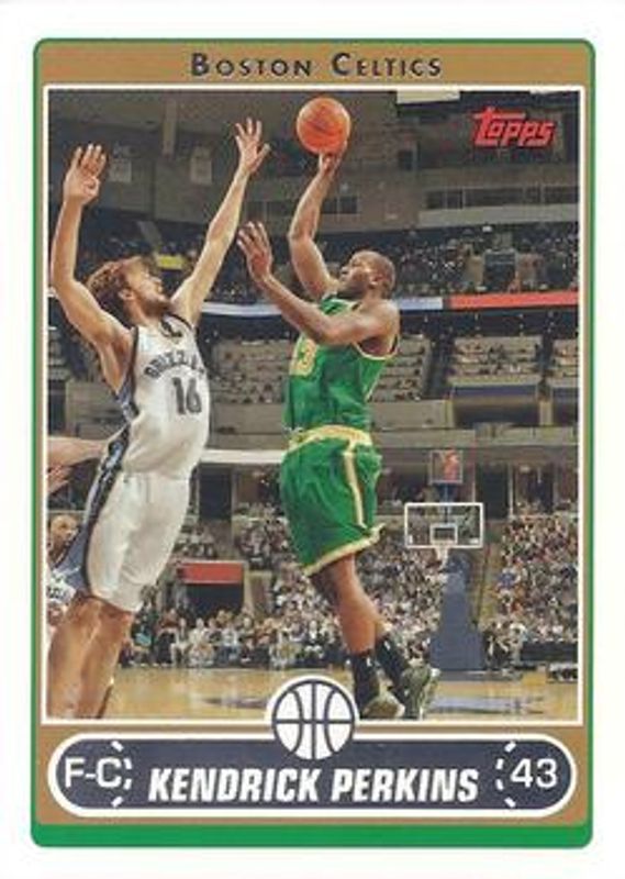 The Kendrick Perkins 2006 Topps #215 Base card is 1 of 4 Kendrick Perkins' card variations in the 2006 Topps set being tracked by Sports Card Investor, including Gold /500, Black /99, and Platinum /1.