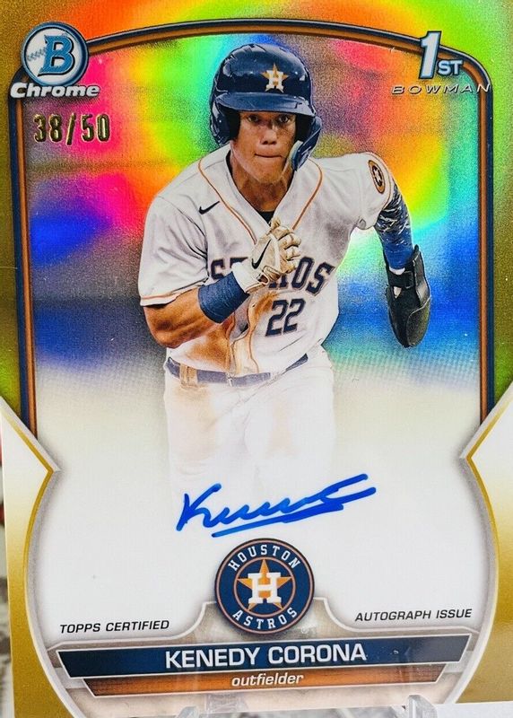 /50 Kenedy Corona 1st AUTO 2023 Bowman Chrome #CPA-KC TRUE GOLD RRFRACTOR Astros