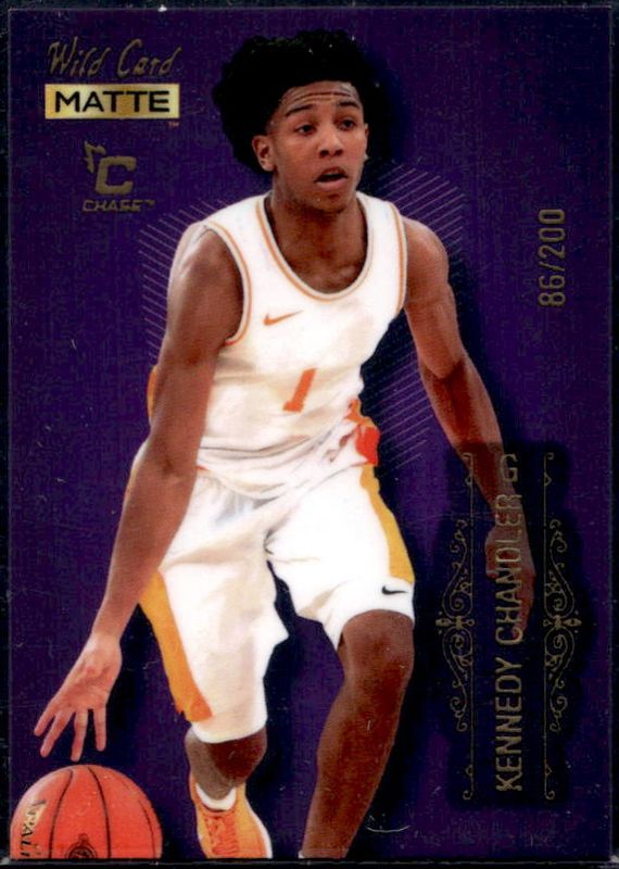 The Kennedy Chandler 2022 Wild Card Matte #MB-47 Purple Chase /200 Rookie card is 1 of 451 Kennedy Chandler's card variations in the 2022 Wild Card Matte set being tracked by Sports Card Investor, including Base, 5 Stripe Black, 5 Stripe White, Black, and Blue Chase.