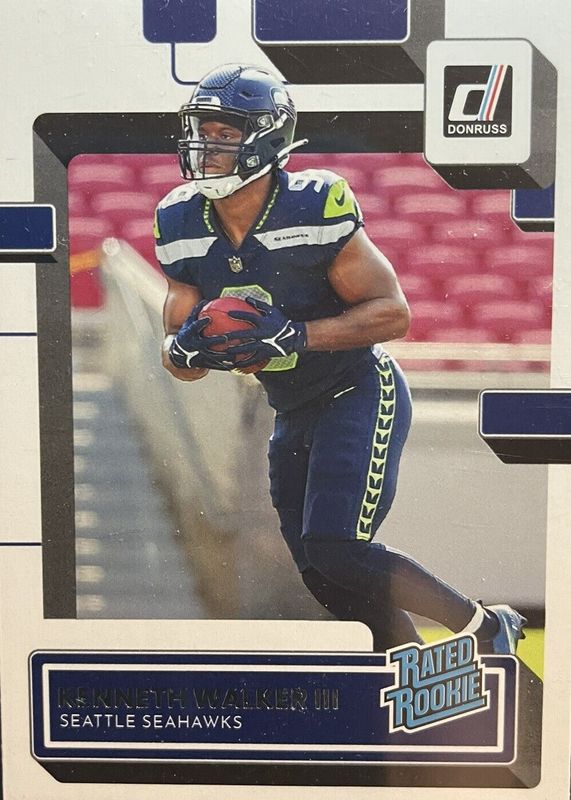This card is 1 of 42 Kenneth Walker III's card variations in the 2022 Donruss set being tracked by Sports Card Investor, including Base, Canvas, Jersey Number (/9), No Name, and Optic Preview.
