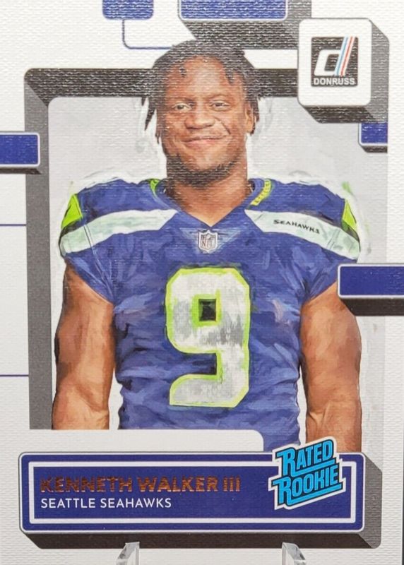 This card is 1 of 42 Kenneth Walker III's card variations in the 2022 Donruss set being tracked by Sports Card Investor, including Base, Aqueous Test, Canvas, Jersey Number (/9), and No Name.