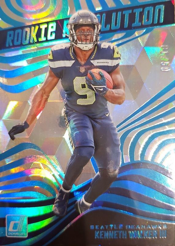 The Kenneth Walker III 2022 Donruss #REV-17 Rookie Revolution - Cubic /50 card in Raw condition has not changed in price in the last 30 days and was last sold for $2.35 .