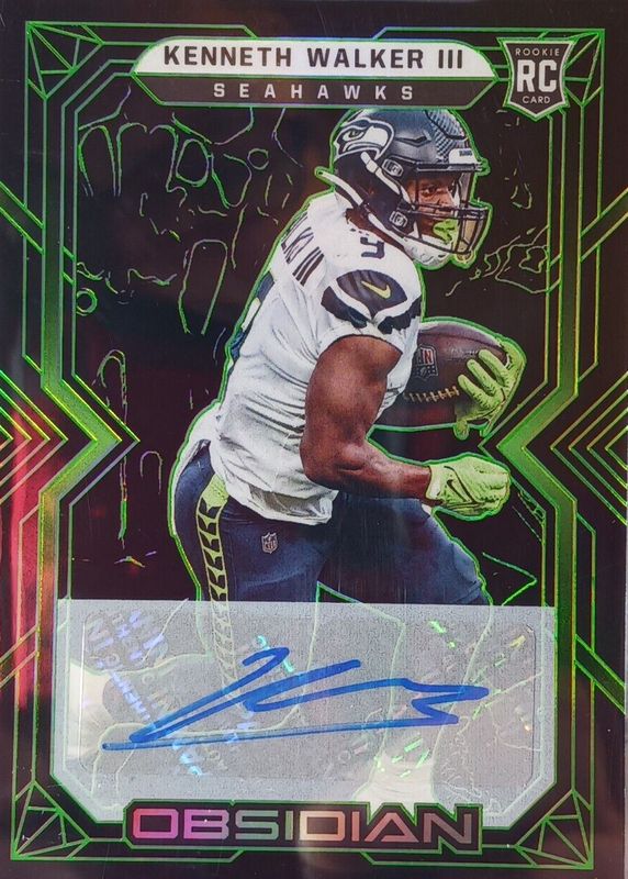 2022 Obsidian KENNETH WALKER III Lime Green Auto 22/50 Rookie RC #108 Seahawks
