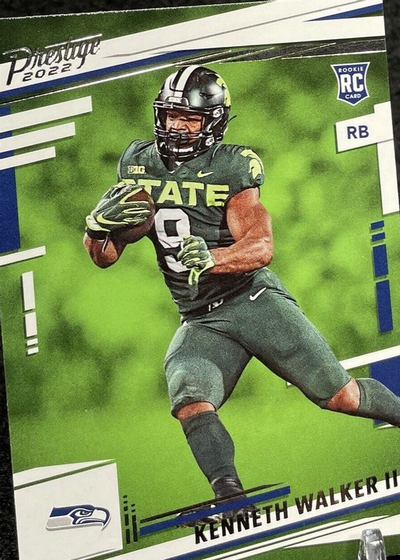 The Kenneth Walker III 2022 Prestige #314 Base Rookie card in Raw condition has moved up $7.01 (+708%) in the last 30 days and was last sold for $8.00 .